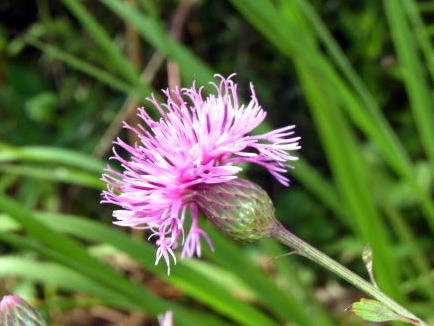 アザミ類に似ているが、葉にはとげがない。