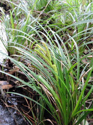 平地の湿地や浅水中に生えるカサスゲに比べ、強剛な印象です。