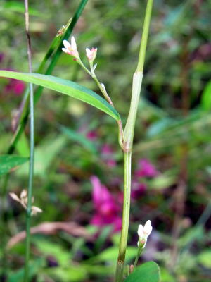 ミゾソバに比べ花が小さく、葉形も違うので、同行の植物の専門家に尋ねたところ、ミゾソバと同科同属のヤノネグサと分かりました。