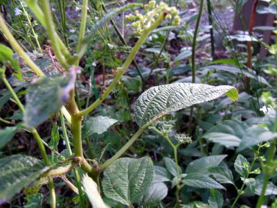 都城市早水公園の薬草コーナーで、見かけたムカゴイラクサです。
