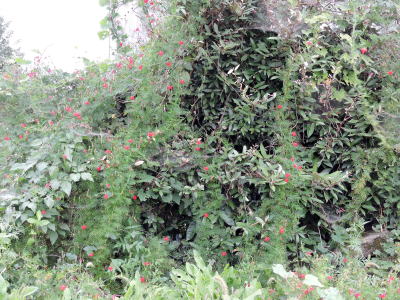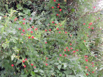 庭などで見かける可愛らしいルコウソウの印象を覆すような勢いで、つるを伸ばし、広がっています。
