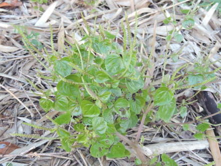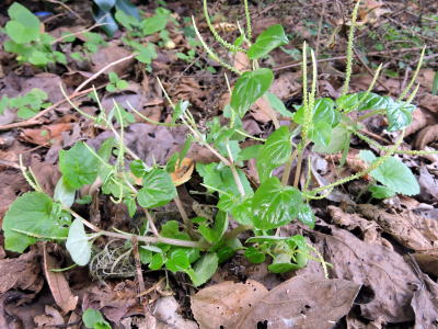 竹藪近くの路傍で、浅緑の心形葉をつけた草丈20数cm位の植物を見かけました。