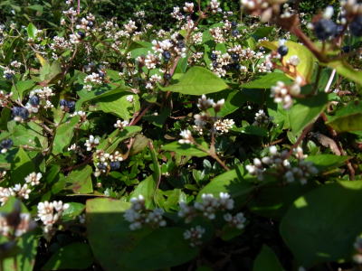 花と一緒に黒い果実(そう果)をつけているツルソバを見かけましたので、写真を追加しました(3〜5段目の4枚)。