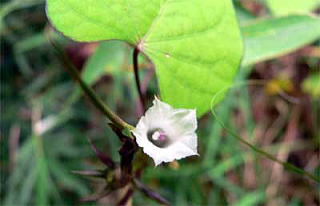 北アメリカ原産で、,日本でも帰化雑草として道端などに見られるつる性の1年草です。
