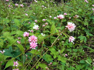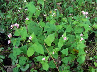 2017年、川沿いで勢いよく繁茂するミゾソバの群生を見かけましたので、写真を追加しました(4〜5段目の4枚の写真)。