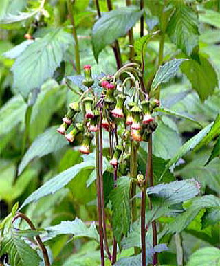 数個の頭花が茎頂につきますが、すべて下向きに垂れて咲くのが特徴です。