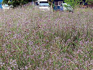 08年、西都市の東九州自動車道や県道219号線の路側帯に群生しているダキバアレチハナガサに気付き、翌季の花期を待って、09年6月、状況確認に出掛けました。
