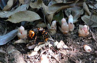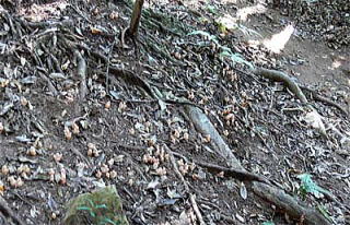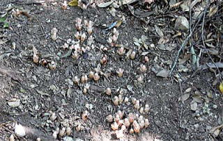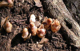 四国、九州に分布し、シイの木の根に群をなして生える寄生植物です。