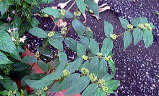 葉えきから出る枝先に、杯状花序が密集してつく。