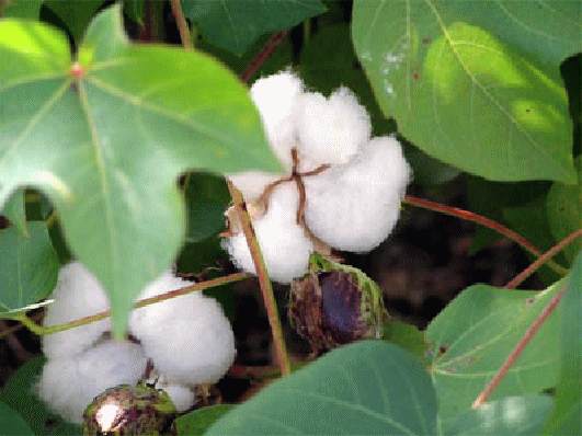 種子を包む白い長い毛を紡いで、綿糸をつくり、種子からは油(棉実油)をとる。
