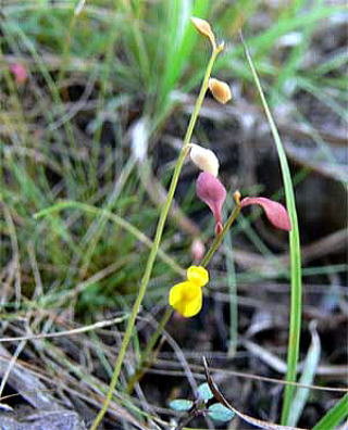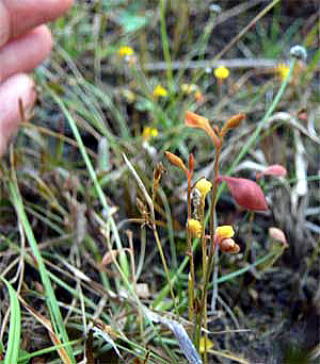 葉は、地下茎から延び、長さ6〜8mm,基部に1〜2個の捕虫のうがある。