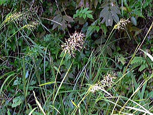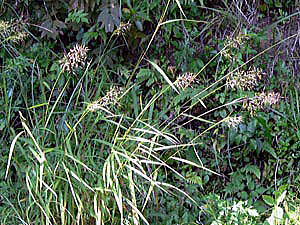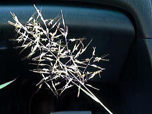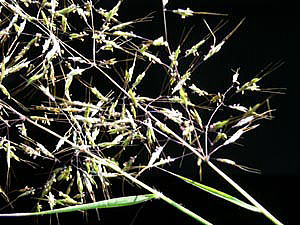 花は、秋,有柄の小穂は芒がなく、雄性。無柄の小穂は、両性で有芒。