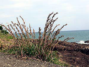もともと、海岸性の植物ではないと思いますが、私が観察したオガルカヤは、宮崎市木花海岸沿いの青島パブリックゴルフセンターと美々津海岸の2ヶ所だけです。
