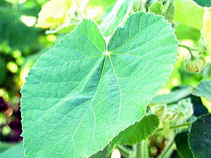 葉は、互生、長い柄のある心臓形。全体に軟毛を密生する。