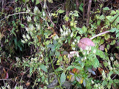 多くの図鑑では、山野の湿地や湿気のある水辺や谷川沿いの林縁に生えると記されていますが、あまり水気の無い場所のようです。