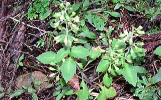 茎は、シソ科特有の四角で、まばらに分枝し、高さは20cm位、葉とともに毛があります。