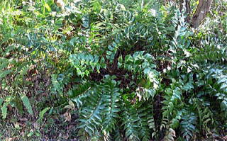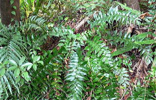 海岸近くの林の縁や岩の間などに生える大型のシダですが、温暖な地方ではやや内陸の丘陵地帯にも生育するといいます。