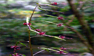 暗い林内に咲いており、花は細い線状で、背が高く、撮影しにくい植物草でしたが、何とか撮影できました。