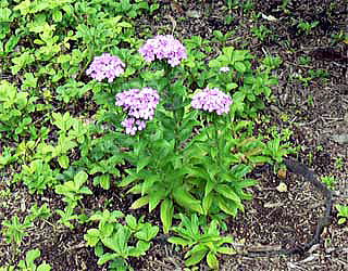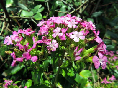 2009年7月、県薬草・地域作物センターのハマナデシコの花がちょうど開花していましたので、写真を追加しました。紅紫色の美しい5弁花を沢山つけていました(4段目の2枚の写真)。