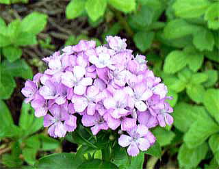 花は、夏,がく片5裂,長さ1.5〜2.5cm,花弁5枚は紅紫色。
