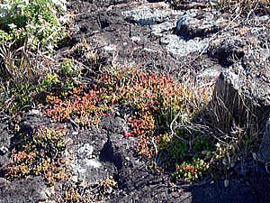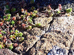 08年12月に美々津海岸で、ヤマジソの花後の姿を観察した折、マンネングサに似た小さな草が、海岸の岩場の斜面に群生しているのを見つけました。