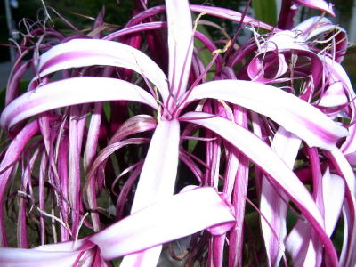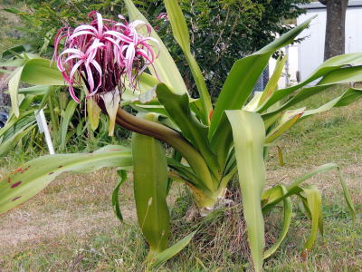 ハマユウは、夏に咲きますが、花色が紅色のハマユウが咲いているのを見かけました。