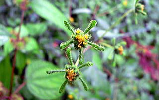 頭花を包む総苞片5個には腺毛が目立ちます。