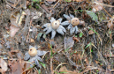 一番下の写真のツチグリは、先端が破れており、既に胞子を放出したものと思われます。