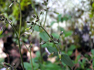 茎は、株もとから束生,斜上し,高さ15〜30cm,毛があり,上部に腺毛が混生,暗紫色。