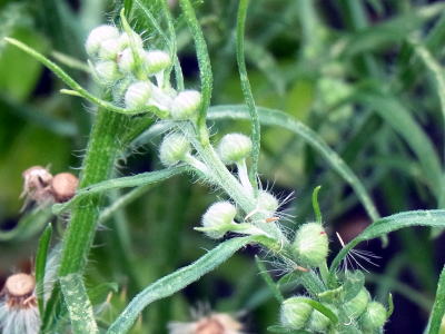 近寄って、蕾、頭花、果序やそう果などの様子も撮影しましたので写真を追加しました(4~9段目の写真)。