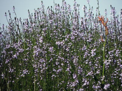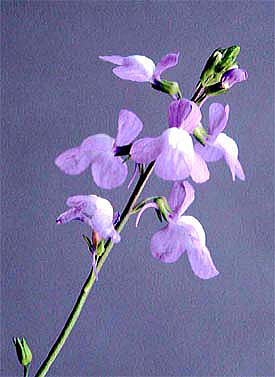 花は、春から夏にかけて、茎頂に総状花序をのばし、青紫色の小さな唇形花を咲かせます。