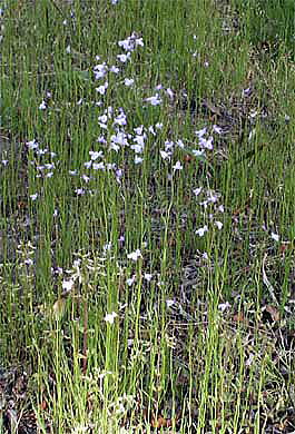 畑道を走行中、畑の土手の上に、小さな丘を成して群生しているマツバウンランの花を見かけました。