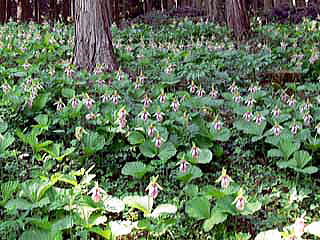 標高800m近い鳥屋岳(トヤダケ)の杉林一帯に、おびただしい数のクマガイソウが一斉に開花しているさまは、何とも素晴らしいものでした 。