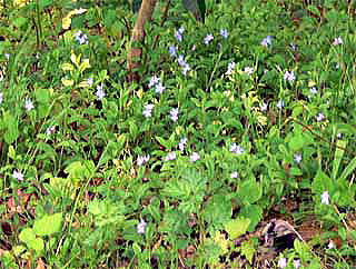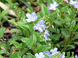 花は、春,花冠は径1.5cm位,裂片には白い稜がある。
