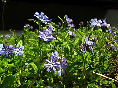 高千穂町鳥屋岳で、クマガイソウの保護活動をされている興梠幸男さんの山を散策中、半日陰の林の中で、ホタルカズラが青い美しい花を咲かせていました。