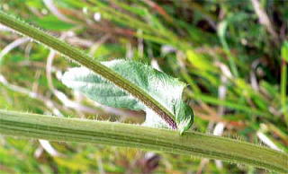 ヒメジョオンに似ていますが、茎葉の基部は耳形で、茎を抱くこと、根生葉は長楕円形で、花の頃にも残っていること、茎は中空であることなどがヒメジョオンと違う点です。