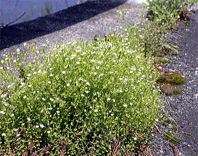 ハコベの類と思いましたが、ハコベとは印象が異なり、細い茎に無柄の葉が多層的に対生している様子が、あまりなじみのない印象でした。