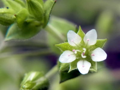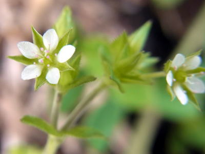 普通のハコベは、5弁の花びらが深く2裂するので、花びらが10枚あるように見えます。