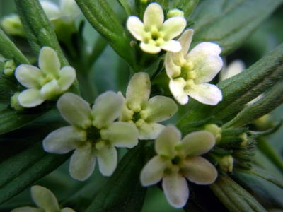 花は初夏,合弁花冠は白色で径4〜8mmあり高盆状。