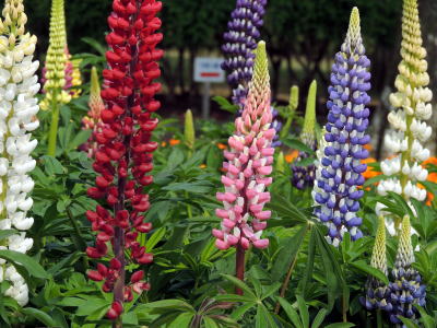 園内の花壇には、色とりどりのカサバルピナスの花も咲いていました(4段目左側の写真)。