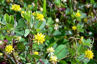 四つ葉のクローバー探しでお馴染みのシロツメクサやムラサキツメクサ(別名アカツメクサ)と同じ属で、ツメクサ(ナデシコ科ツメクサ属)の仲間ではありません。