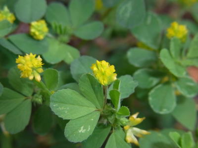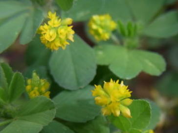 葉は、3小葉からなり、花は、大変小さな蝶形花が5〜20個、茎先に集まって咲きます。