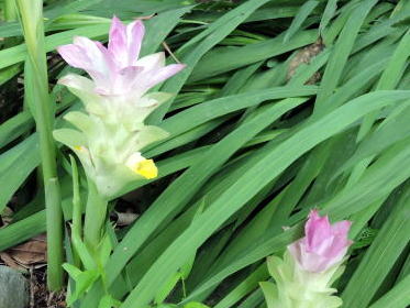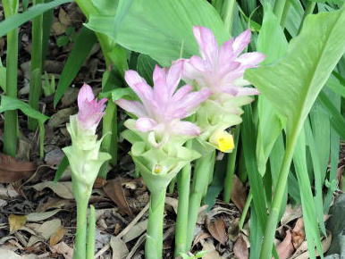 和名は,漢名薑黄の音読み,春鬱金(はるうこん)は、春の終わりから初夏に花が咲くから。