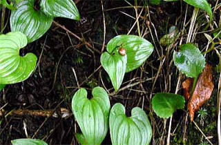 各地の針葉樹林帯の木かげに生える多年草ですが、霧島えびのでは、県道1号線、県道30号線、ともに道路脇の道端で見かけました。