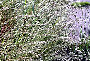 ホソムギは、牧草あるいは種子吹き付けによる緑化などに利用される多年草ですから、牧草として栽培されたものが野生化したのか、あるいは堤防の緑化に使われたものではないでしょうか。