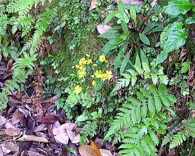 峡谷沿いの崖に、小さな黄色い花を咲かせていました。