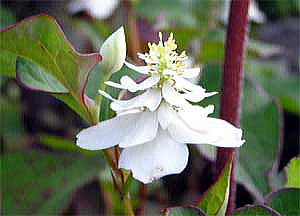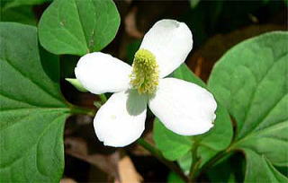 草丈は、20〜60cm、花は初夏、白い花弁のように見えるのは、4枚の総苞片で、その中心に穂状についているのが花です。