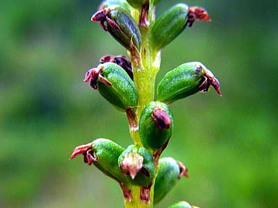 花序の上部が咲き終わらないうちに、下部は稔る。