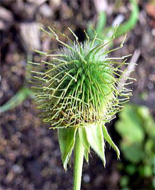 花柱は、先端がかぎ状に曲がり、花後まで残り、人や動物に付着して種子を遠くへ運びます。
