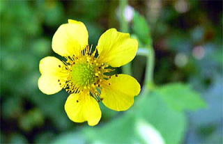 花は初夏から夏、枝の先に直径1〜2pの黄色の5弁の花を開きます。